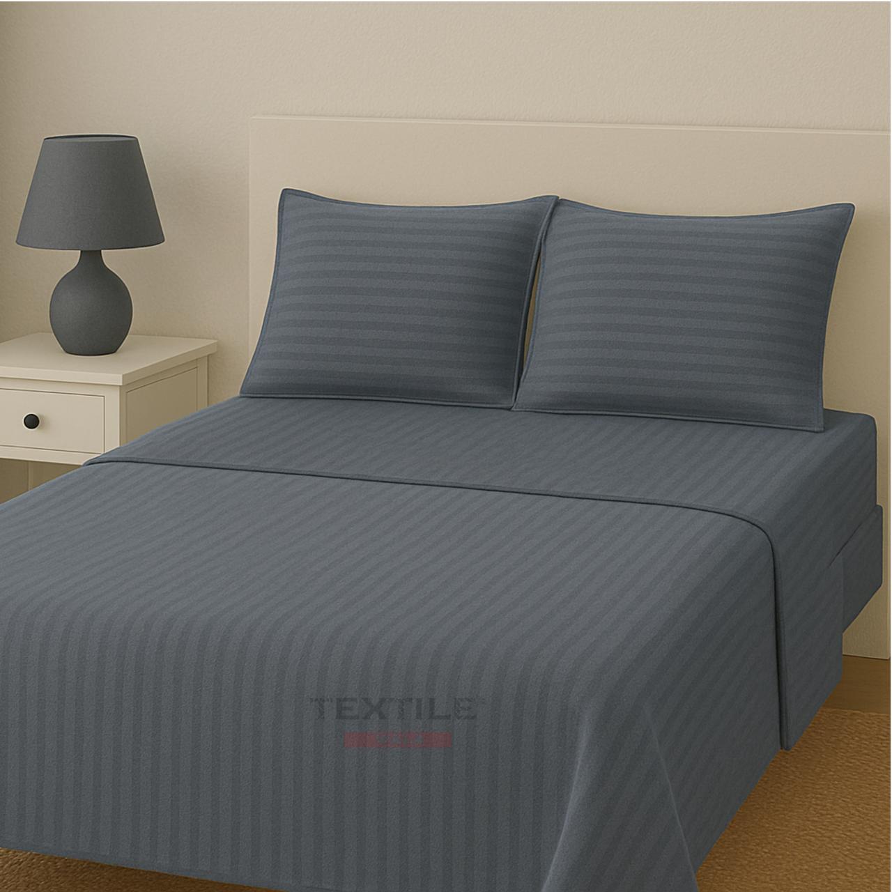 TEXTILEWALA 320 TC Cotton Feel Bedsheet King Size | Stripe Design | 90x100 Inches Double Bed Bedsheet with 2 Pillow Covers | Soft, Easy Care | Ideal for Home & Gifting (Grey)